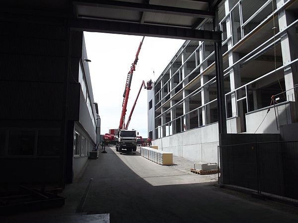 Aktuell erfolgt die Montage der Fassade von Halle 7 ...