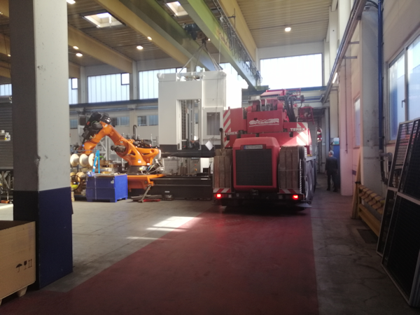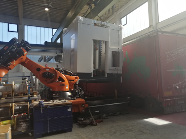 Nachfolgend Fotos von der Anlieferung unserer neuen Heller CP 8000. Das 5-Achs-Fräs-Drehbearbeitungszentrum - für kombiniertes Fräsen und Drehen auf einer Maschine - wird in unsere bereits bestehende Verkettung von 3 Heller MCH 350 Bearbeitungszentren (dem RILE Flexiblen Fertigungssystem FFS) mit eingebunden.